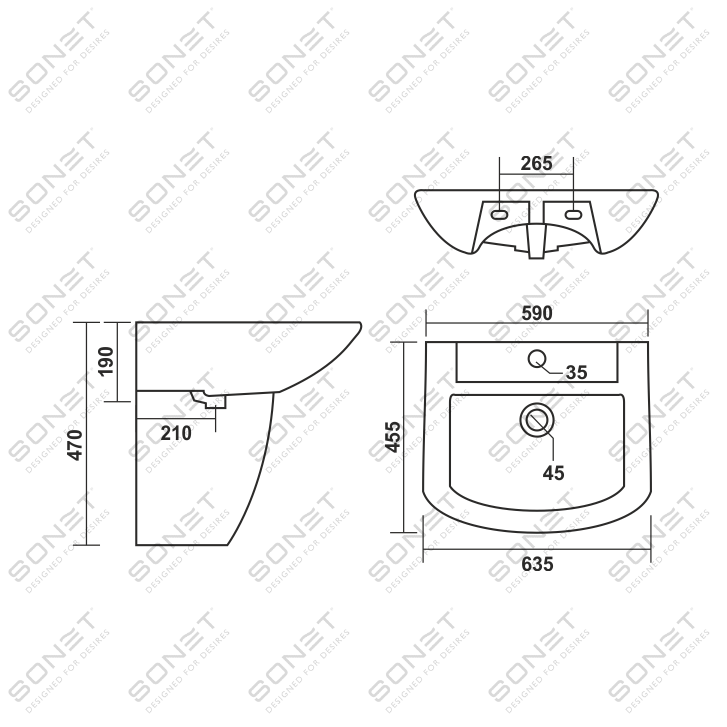 Basin with Half Pedestal
