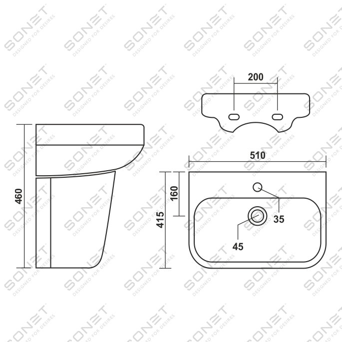 Basin with Half Pedestal