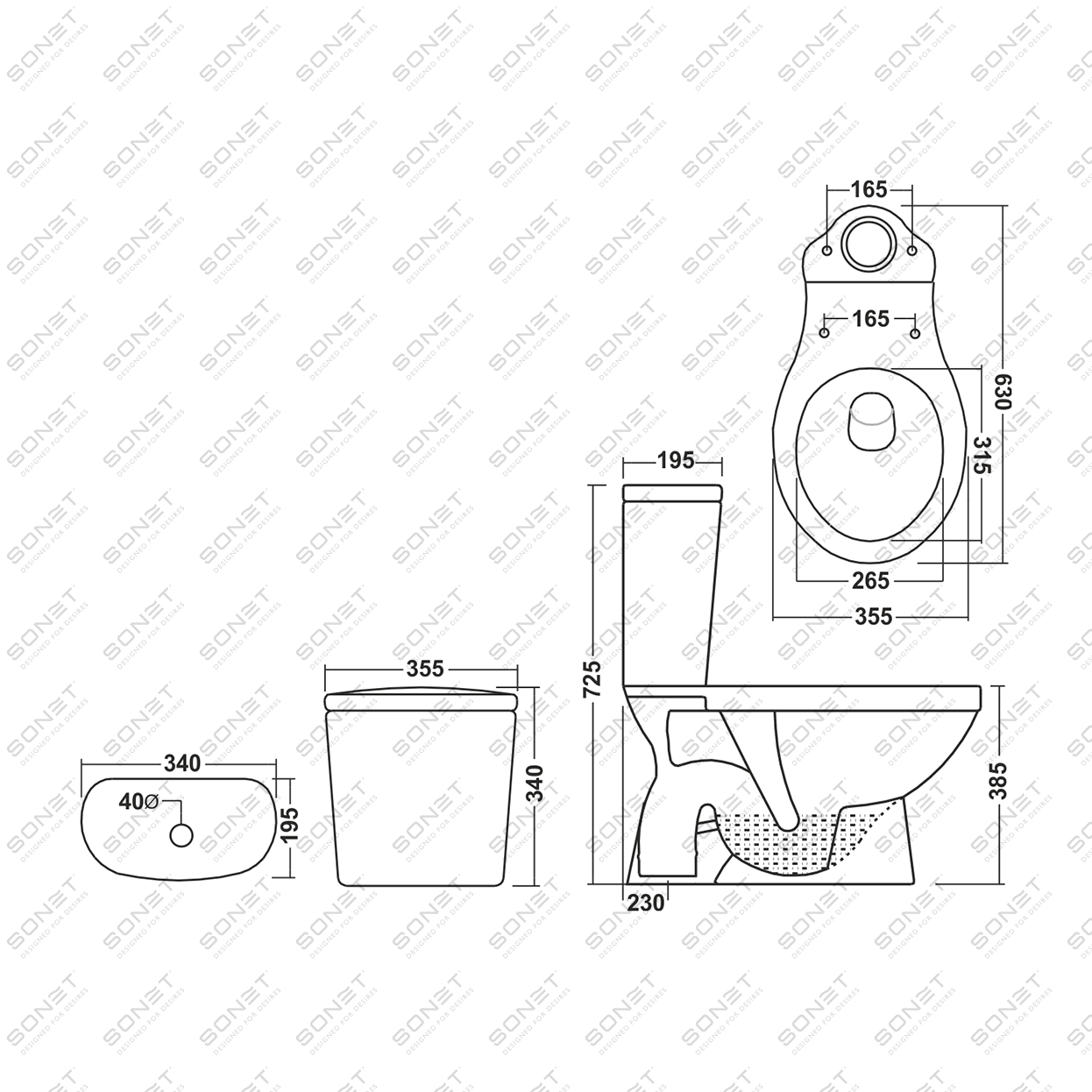 630x355x725 mm