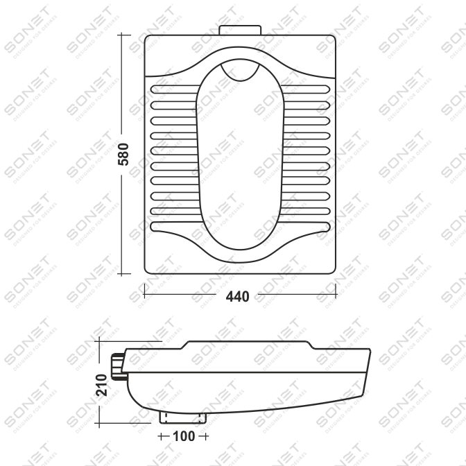 580x440x210 mm (23")
