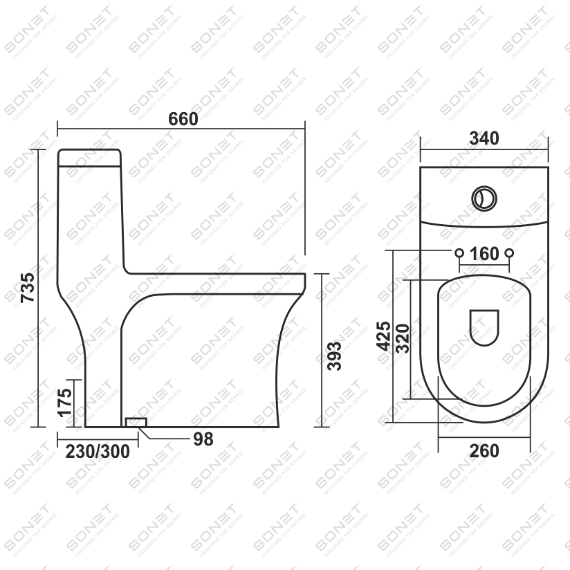 S trap 230 mm, 300 mm / P trap 180 mm