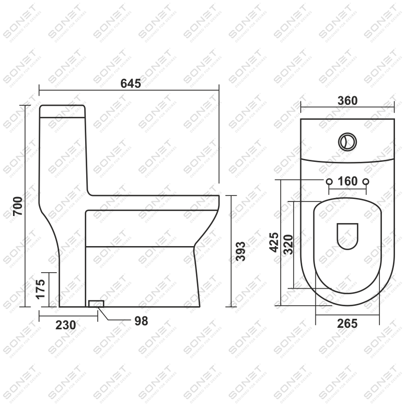 S trap 230 mm / P Trap 180 mm